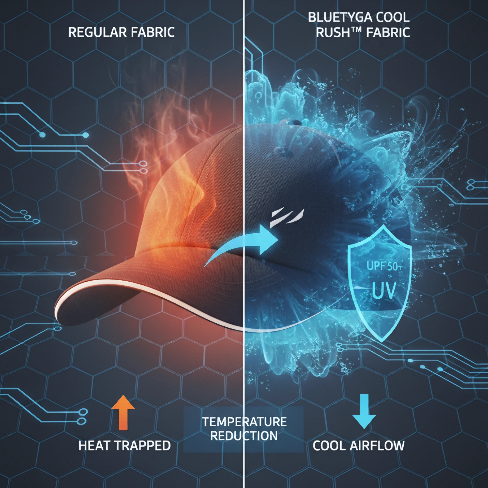 Shield yourself from harsh sun rays with the Bluetyga Sunscreen Cap Ice Pro. Designed with advanced UPF 50+ protection and Cool Rush™ technology, it keeps you cool and protected under peak heat. The lightweight, quick-dry fabric ensures all-day comfort, while antimicrobial and odor-control features keep freshness intact. Certified under OEKO-TEX® and ISO standards, this cap doesn’t fade, shrink, or pill—making it your go-to everyday sun defense gear.