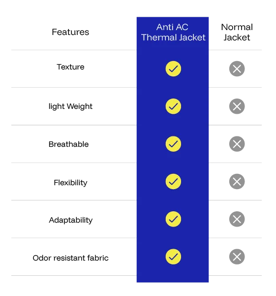 Say goodbye to shivering in over-cooled offices, long flights, or AC-heavy workspaces. The Bluetyga Anti-AC Thermal Jacket with Heattrap™ Technology regulates warmth smartly—keeping you cozy in the chill yet never overheated. Engineered from a premium Modal-Acrylic-Spandex blend, it is ultra-soft, sweat-wicking, wrinkle-free, and baggable for travel. Built for 16–24°C indoor chill zones, it’s the perfect solution for comfort, portability, and modern work-life versatility.