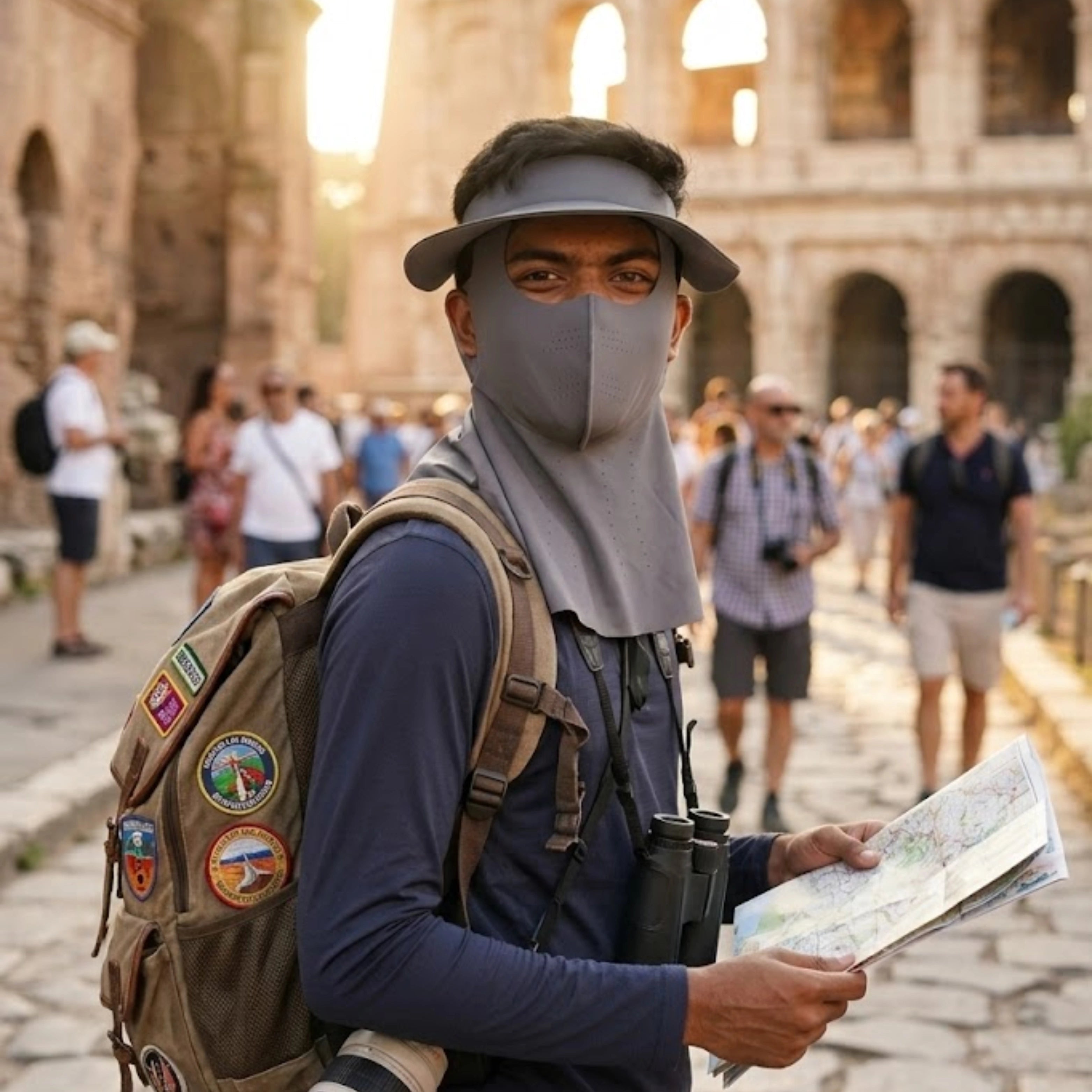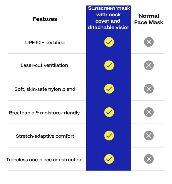Featuring a wide-brim UPF 50+ visor, a laser-cut, stitch-free breathable face mask, and an extended neck shield, this system is engineered to protect while staying light, airy, and skin-friendly.